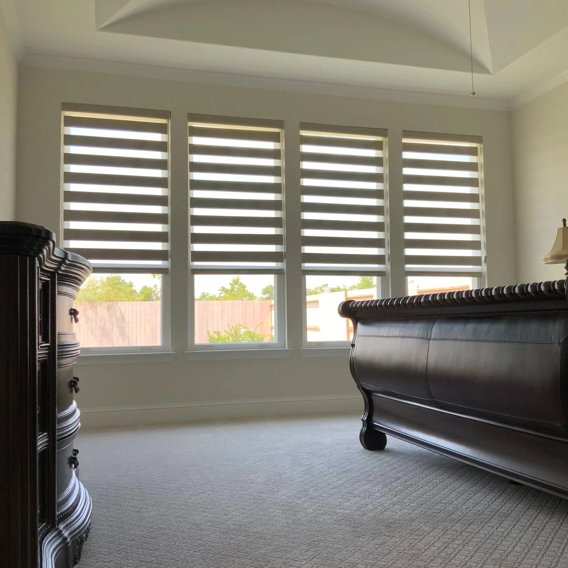 Why settle for plain white when your windows could be dressed to impress? Rich, colorful fabrics instantly elevate a room, adding depth, warmth, and that “custom luxury” feel you just can’t get from standard white treatments. Darker tones or layered textures don’t just look sophisticated—they also offer better light control and room darkening, perfect for movie nights or lazy Sunday mornings. And while you’re at it, pay attention to the details—many modern mechanisms come with metal accents, so be sure to choose finishes that coordinate with your home’s hardware for a seamless, designer look