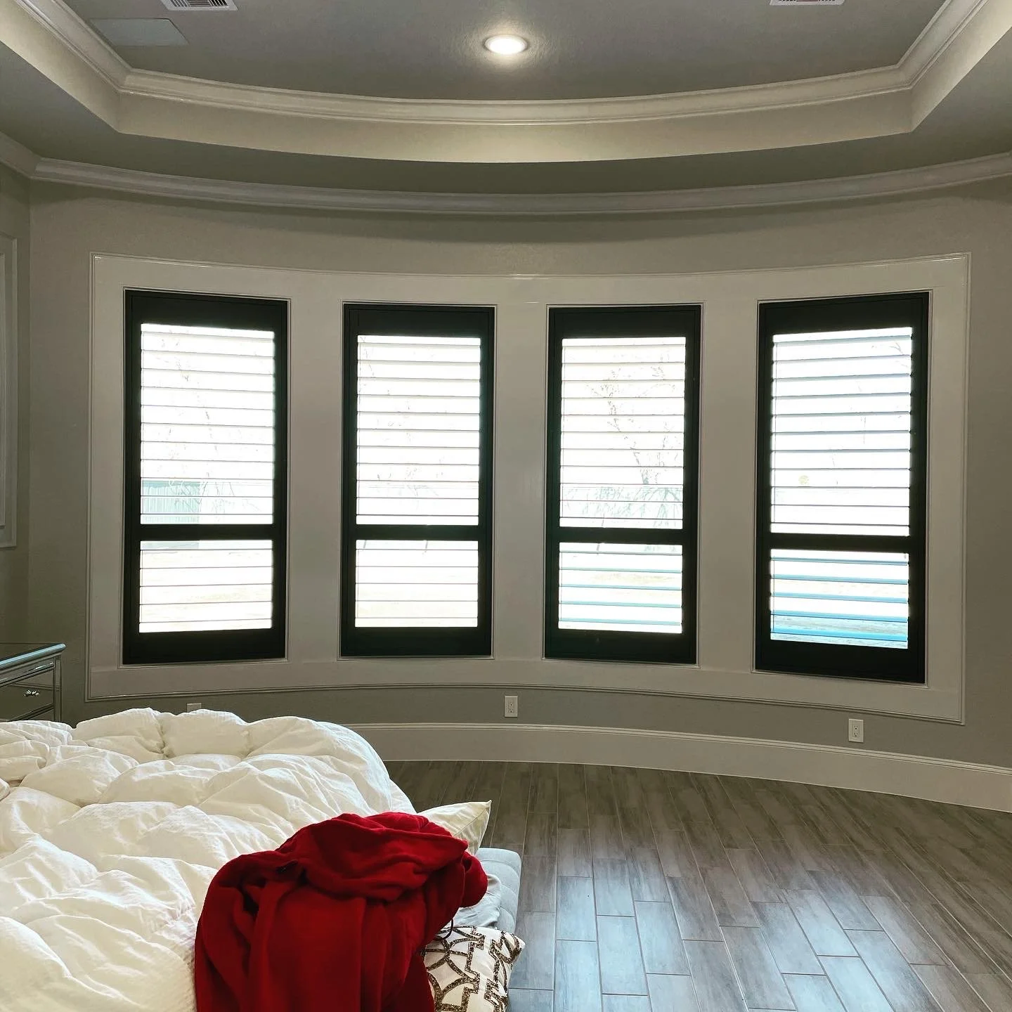 Forever Luxury Plantation Shutters Tiled Bath Plantation Install Casement Windows Sidelight Plantation Shutters Entryway Arched Shutters Plantation Shutters with Cut Outs Dark Plantation Shutters